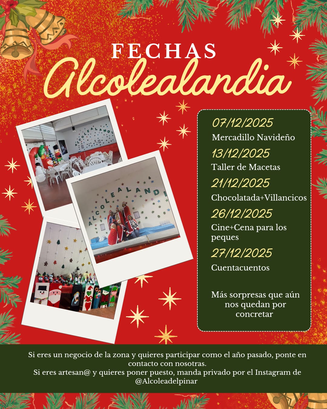 Calendario de festejos y actividades para toda la familia, especialmente para los chiquitines. Estas navidades nadie se aburre en Alcolea.